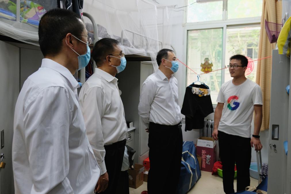 学院田新民书记一行在走访硕士研究生宿舍时,了解学生们在校学习生活情况,叮嘱校园及宿舍安全问题,询问学生暑期安排、个人未来发展规划以及对学校学院发展意见建议。同时,希望同学们能够科学合理规划学业,早日成长成才。