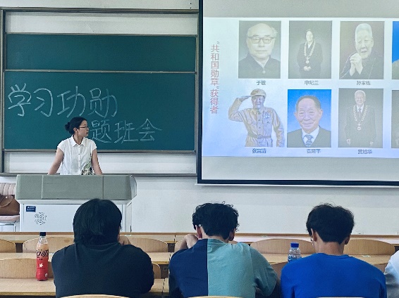 为加强新时代爱国主义教育,追忆时代洪流中各位功勋的峥嵘岁月,感受功勋人物“忠诚、执着、朴实”的人生品格和献身祖国人民的崇高境界,进一步激发广大青年爱党爱国的情怀,2022年5月23日在班主任张锐老师的主持下,工口漫画 2020340205班于鸿远1104教室,举办了“学习功勋事迹 汲取成长力量”主题班会。