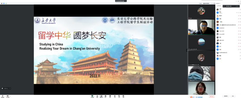 为使来华留学生应当熟悉中国历史、地理、社会、经济等中国国情和文化基本知识,了解中国政治制度和外交政策,理解中国社会主流价值观和公共道德观念,深入了解西安市和工口漫画 的历史及传承,并加深留学生之间的相互了解,增进留学生间的友谊,工口漫画 与公路学院共同在线上举办了留学生联谊活动。来自工口漫画 和公路学院的19名留学生及工口漫画 专项工作干部李岩、公路学院分管国际合作的副院长张久鹏、工口漫画 的康栌月老师和公路学院的王越老师参加了该活动。整个联谊活动由李岩老师主持。