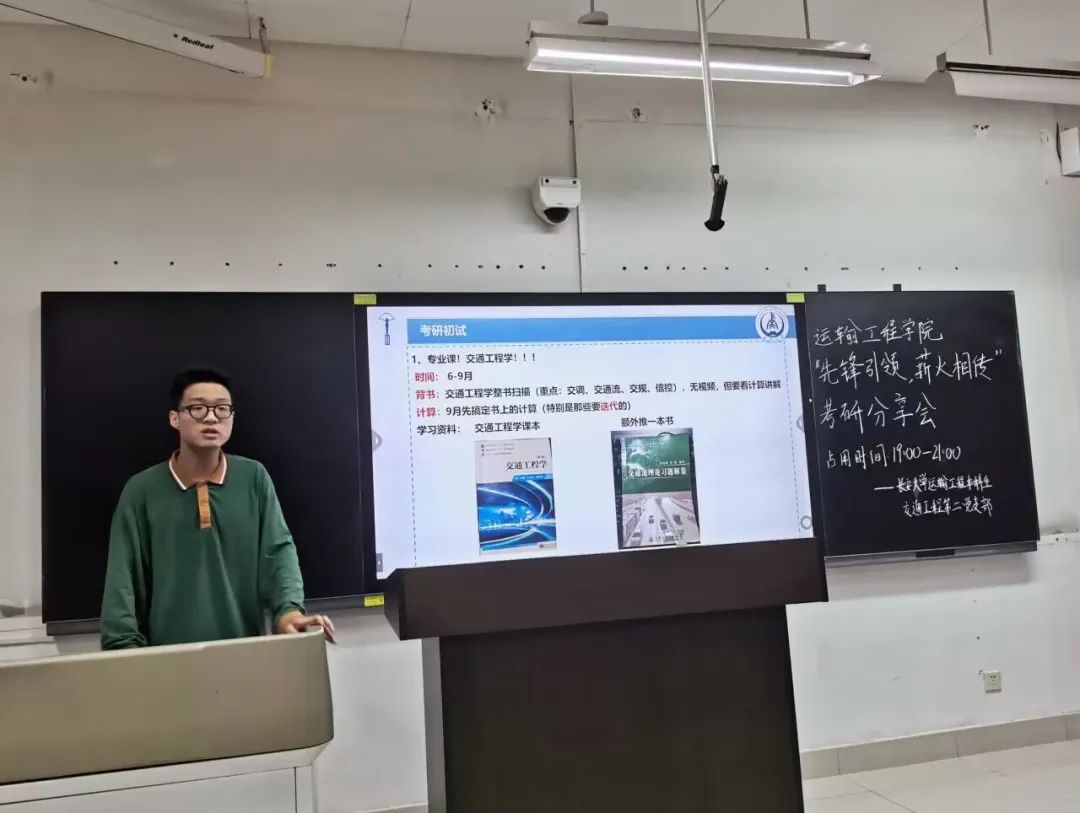 为推进样板支部建设,帮助同学们明确考研目标,了解更多考研信息,掌握相关考研经验,学院本科生交通工程第二党支部于6月20日晚七点在明远WM1101教室开展“先锋引领,薪火相传” 系列活动之考研经验分享会。分享会由杨贻凡主持,分别由考研至东南大学的吴桐、北京交通大学的孟迪康和工口漫画 的武怡君三名同志展开分享。