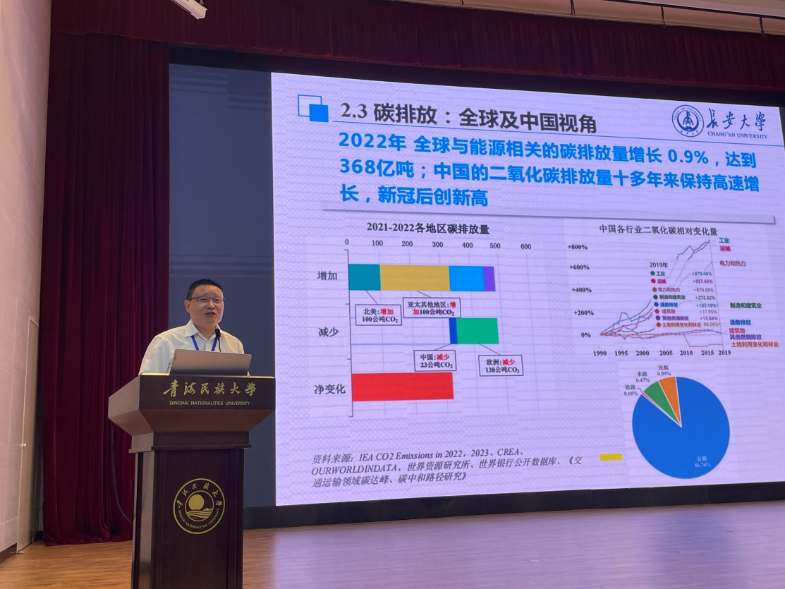 胡大伟教授报告以“汽车电动化与低碳发展:深入剖析与前瞻”为题,分析电动汽车与碳排放研究热点和争议点,介绍了其团队关于此课题的研究成果,并从全寿命周期角度探讨了交通运输碳排放未来研究方向。