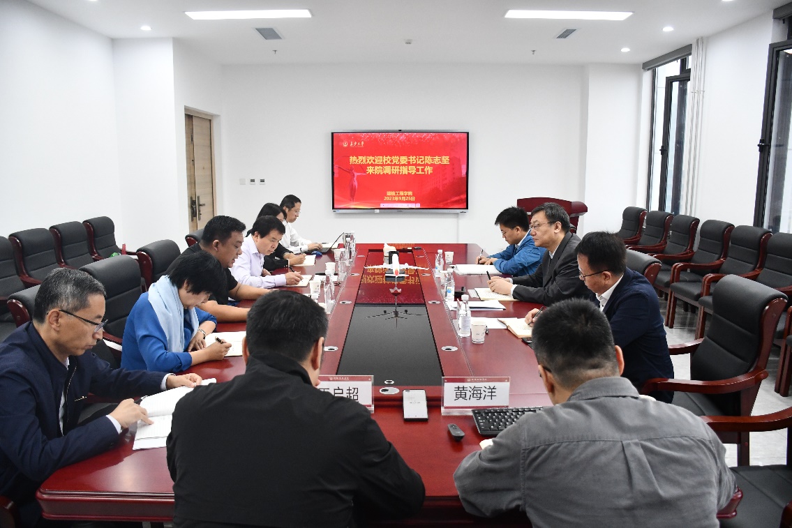陈志坚在听取汇报后对学院近年来工作取得的成绩给予充分肯定,对学院领导班子的辛勤付出表示感谢。针对学院下一步工作,陈志坚提出了三点意见:一是加强领导班子建设,精诚团结,带领全院师生谋发展;二是以学科建设为发展根基,进一步凝练学科方向,入主流、强特色;三是抓牢师资队伍建设,引育并重,做好团队建设和青年教师的培养。