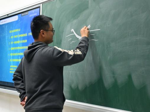 随后,运输青媒主席迟敬蕾进行发言。她对青媒过去一年的工作表示肯定,同时指出了当下青媒在工作沟通中存在一定问题,并提出了相应的改善方案。她鼓励新部员在学习生活上遇到问题时主动找学长学姐提问、交流,希望青媒成员们可以积极表现自己,收获更好的成绩。