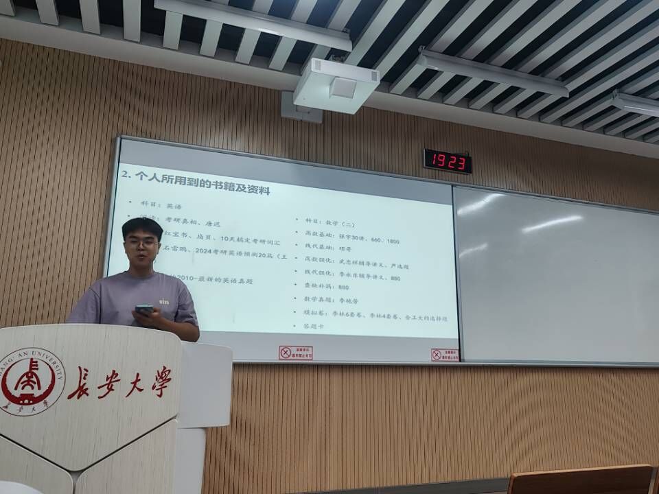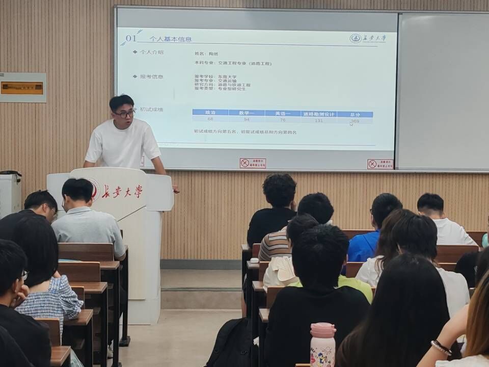 分享会邀请成功上岸工口漫画 、中南大学、北京交通大学、西南交通大学、大连海事大学和东南大学的优秀同学分享自己的考研经验和心得。分享内容围绕考研科目的学习策略以及心态调整等方面,为现场学生推荐复习资料以及学习软件。分享会最后,在场学生踊跃发言提问,分享者一一耐心解答问题。