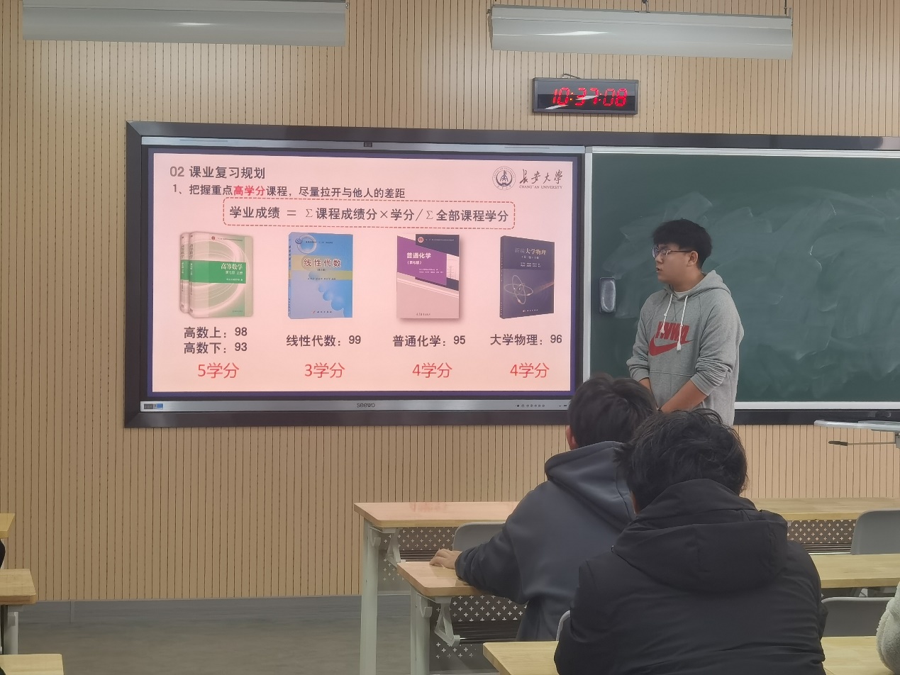 马壮林以“明确当前竞争态势,合理规划时间安排”为题,从竞争压力的分析维度、时间管理核心原则等方面,详细讲解了如何结合自身实际制定目标和时间规划。他强调了提前明确未来方向的重要性,并分享了个性化规划策略,同时提醒同学们在执行过程中注重计划的灵活性与可操作性,以确保目标实现的科学性与可行性。他希望各位同学要珍惜大学时光,科学规划时间,以严谨的态度专注学业,坚定目标、不懈努力,争做优秀的新时代大学生。