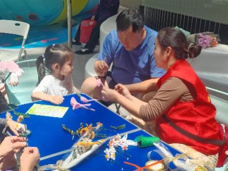 上午十点,荣民龙首广场热闹非凡。志愿者们早早到场,分工协作,有条不紊地布置现场。在扭扭棒花体验区,小朋友和家长们兴趣盎然:五彩缤纷的扭扭棒花摆满摊位,一朵朵饱含祝福的小花如春日般绽放;专门负责教学的志愿者手把手地教孩子们如何用扭扭棒制作花朵,从简单的卷曲到形状塑造,每一步都充满乐趣。体验区不时传来阵阵欢笑声,大家在亲手制作的过程中,感受着浓浓的亲子温情。