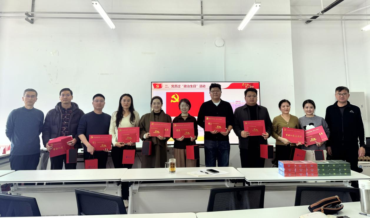 在深入的交流研讨后,支部为在第三和第四季度入党的同志举行了党员过“政治生日”仪式。学院党委委员王建军和支部副书记邵海鹏代表支部向过“政治生日”的党员同志赠送了“政治生日”贺卡和礼物,支部全体党员面向党旗,重温了入党誓词。